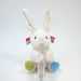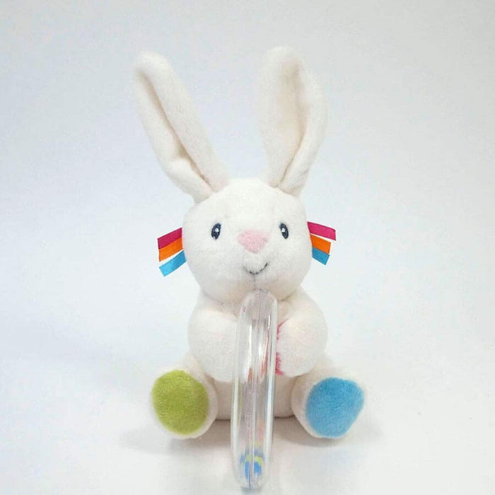 Hello, baby! Flora is a sweet, smiling bunny who loves to play! This cute 5" plush rattle version of Flora is the perfect size for little hands and sure to keep baby engaged during play with sensory-stimulating colorful feet and beads!